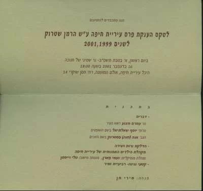 Exhibition of Recipients of the Municipality of Haifa Herman Struk Prizes 1999, 2001