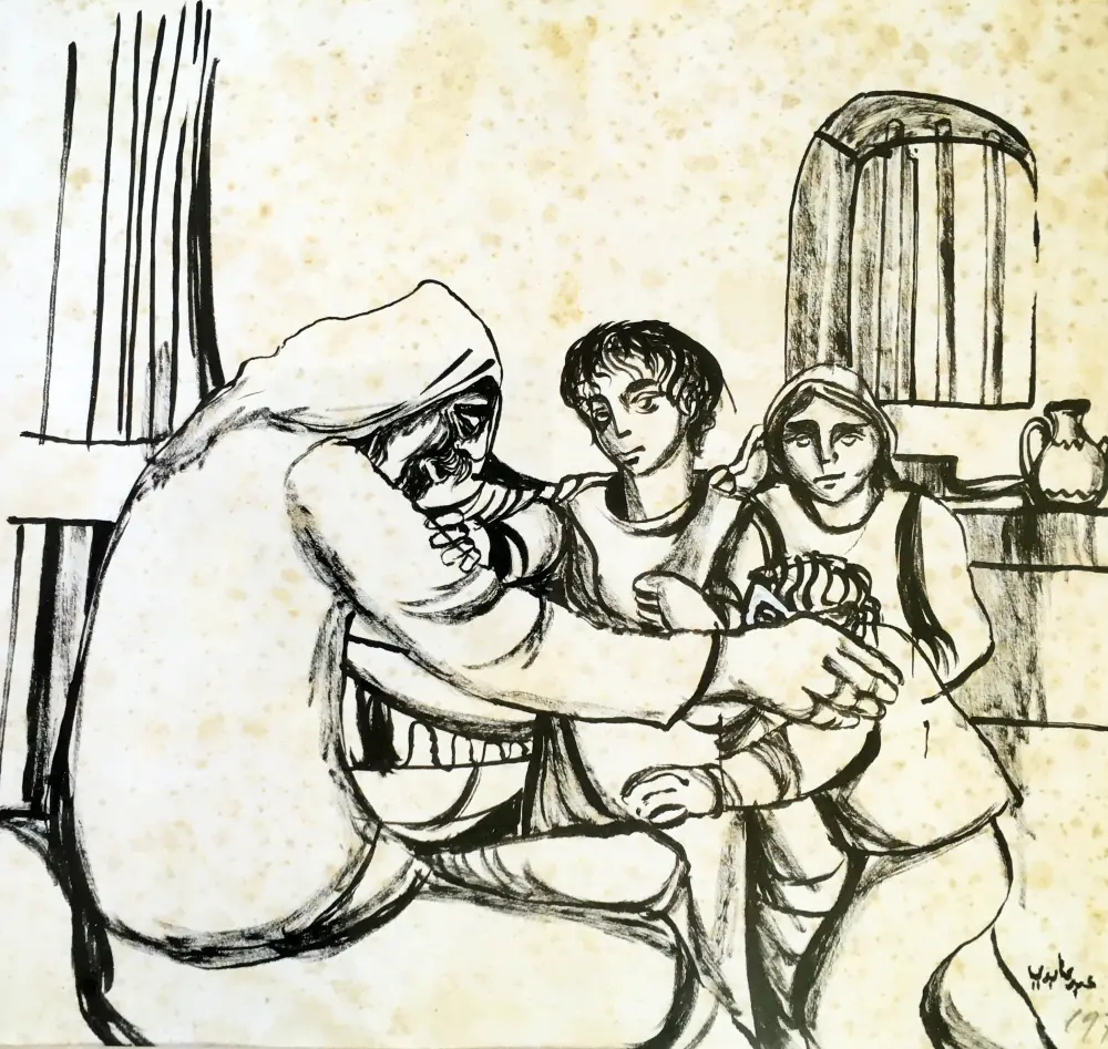 Grandfather tells a story to nephiews